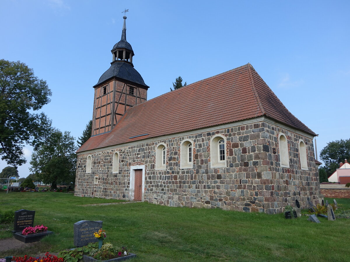 Klein Himstedt, evangelische Kirche, Saalkirche aus Bruchsteinen, erneuert 1782 (13.09.2025)