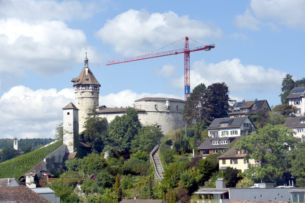 SCHAFFHAUSEN (Kanton Schaffhausen), 18.09.2024, Blick von der Eisenbahnbrücke Feuerthalen auf die Festungsanlage Munot