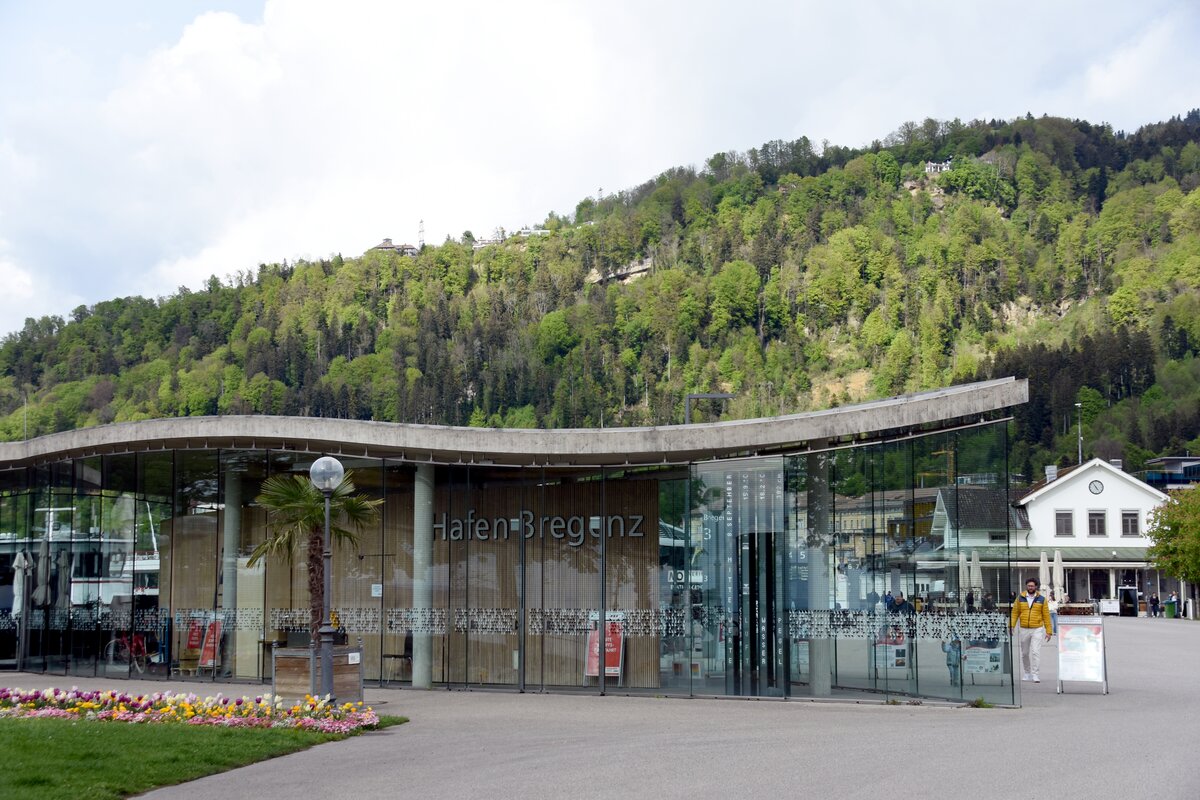 BREGENZ (Vorarlberg), 25.04.2025, Blick auf einen Teil des Hafengebäudes, Welle genannt und in den Jahren 2009/2010 errichtet