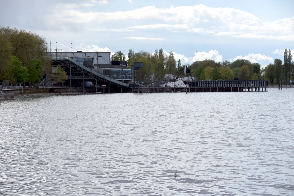 BREGENZ (Vorarlberg), 25.04.2025, Blick über den Bodensee zur Seebühne