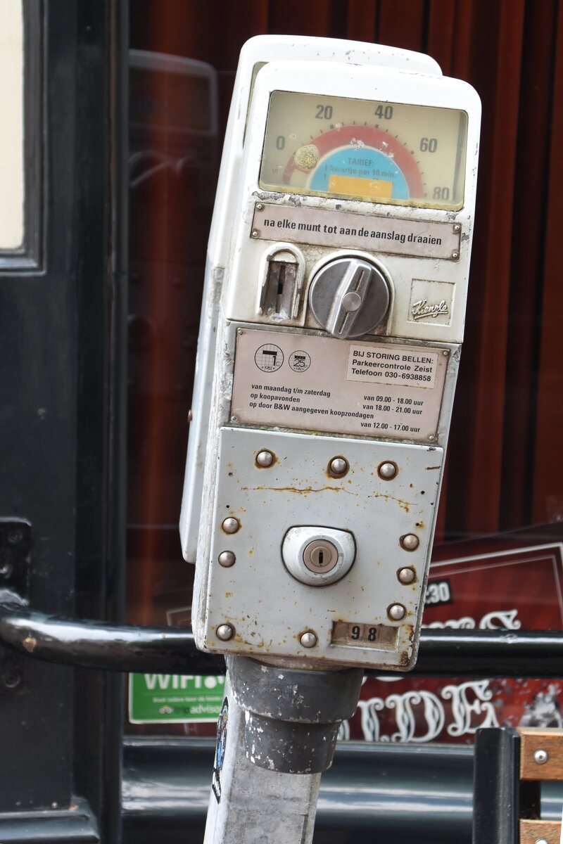 DELFT (Zuid-Holland), 01.06.2025, nicht mehr funktionsfähig und löst trotzdem Erinnerungen aus: die klassische Parkuhr, die es auch in Deutschland gab