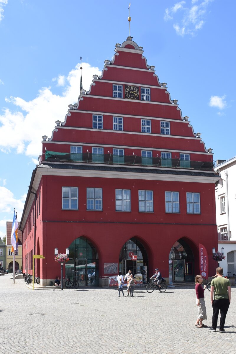 GREIFSWALD (Landkreis Vorpommern-Greifswald), 04.07.2025, Rathaus-Rückseite mit der Greifswald-Information