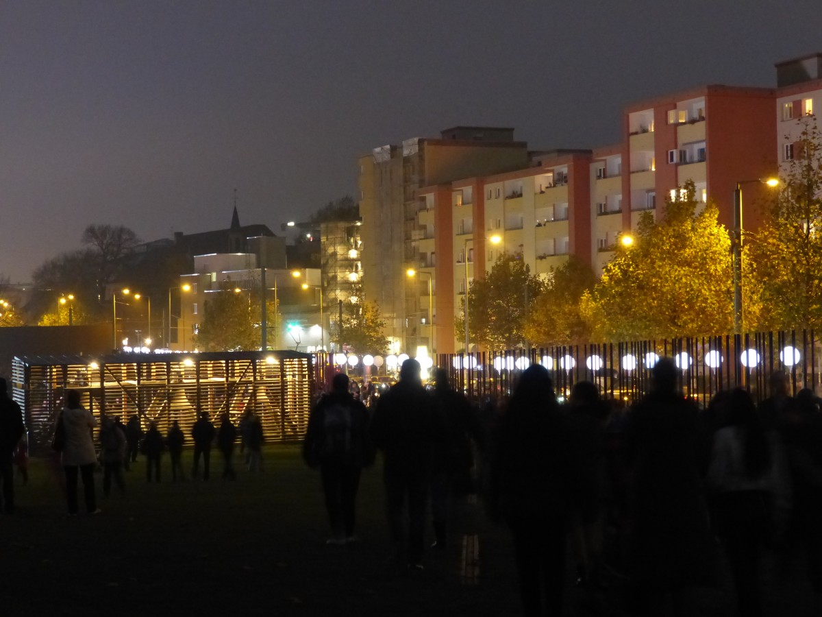 Mauerdurchbruch - an der Gedänkstätte in der Bernauer Straße stehen noch (bzw. wieder) echte Mauerteile, die aber regelmäßig durchbrochen sind. So kann man zwischen "Ost" und "West" hin- und herschlendern. Wenige Tage oder Wochen nach der Maueröffnung muss es hier in der Nähe einen Durchbruch gegeben haben, vielleicht auch eine geöffnete Tür, die viele meiner Mitschüler zum illegalen Übergang nutzten. Wenn sie dabei erwischt wurden, gab es allenfalls eine kleine Standpauke - Wochen später schon eine undenkbare Posse, die Mauer wurde schnell an vielen Stellen geöffnet. 9.11.2014
