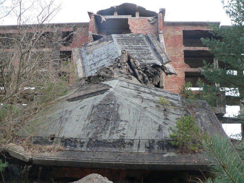 Einige Teile im Süden der gigantischen KdF-Anlage wurden von der Roten Armee gegen Ende der 40er Jahre gesprengt. Andere, wie der hier abgebildete, wurden nur teilweise gesprengt und sind immer noch als stark einsturzgefährdete Ruine zu besichtigen. Ein Zaun hält Übermütige vom Betreten der Anlage ab. 30.12.2007