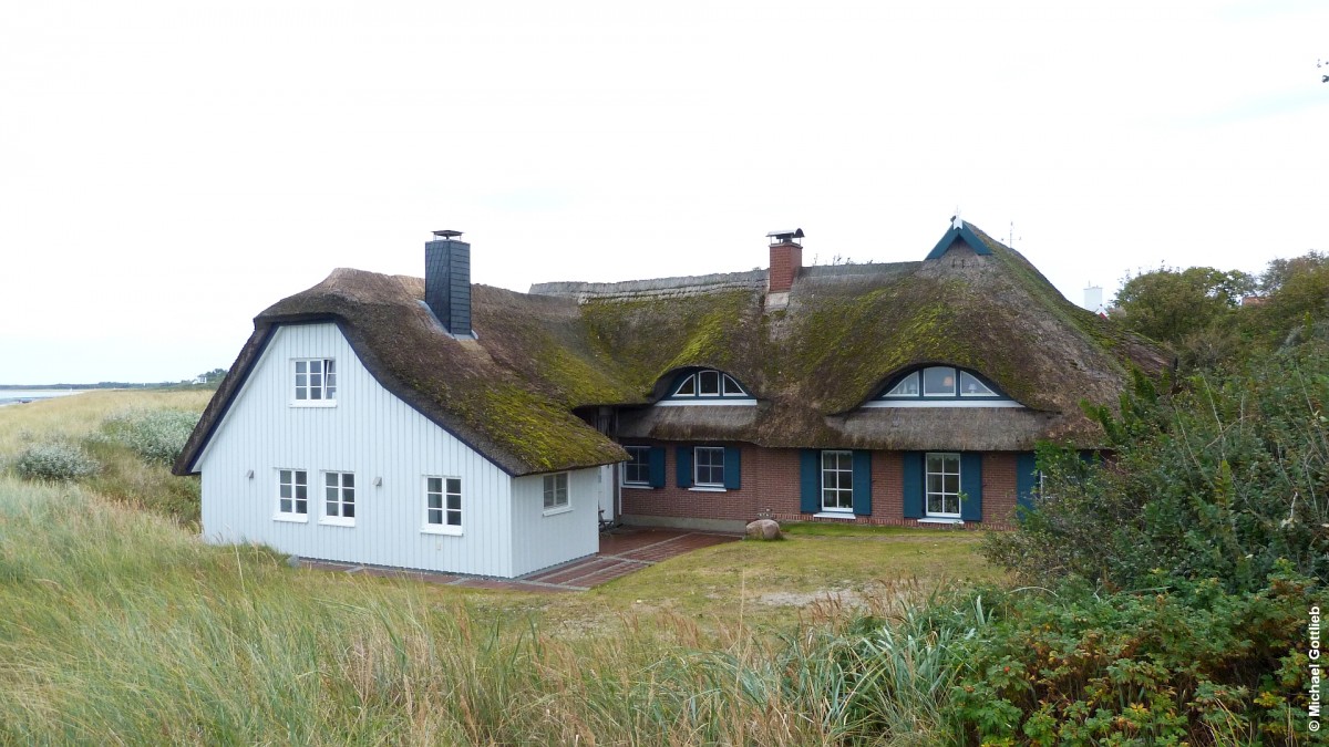 Großes Reetdach gedecktes Haus auf der kleinen Insel Ummanz westlich von Rügen (September 2012)