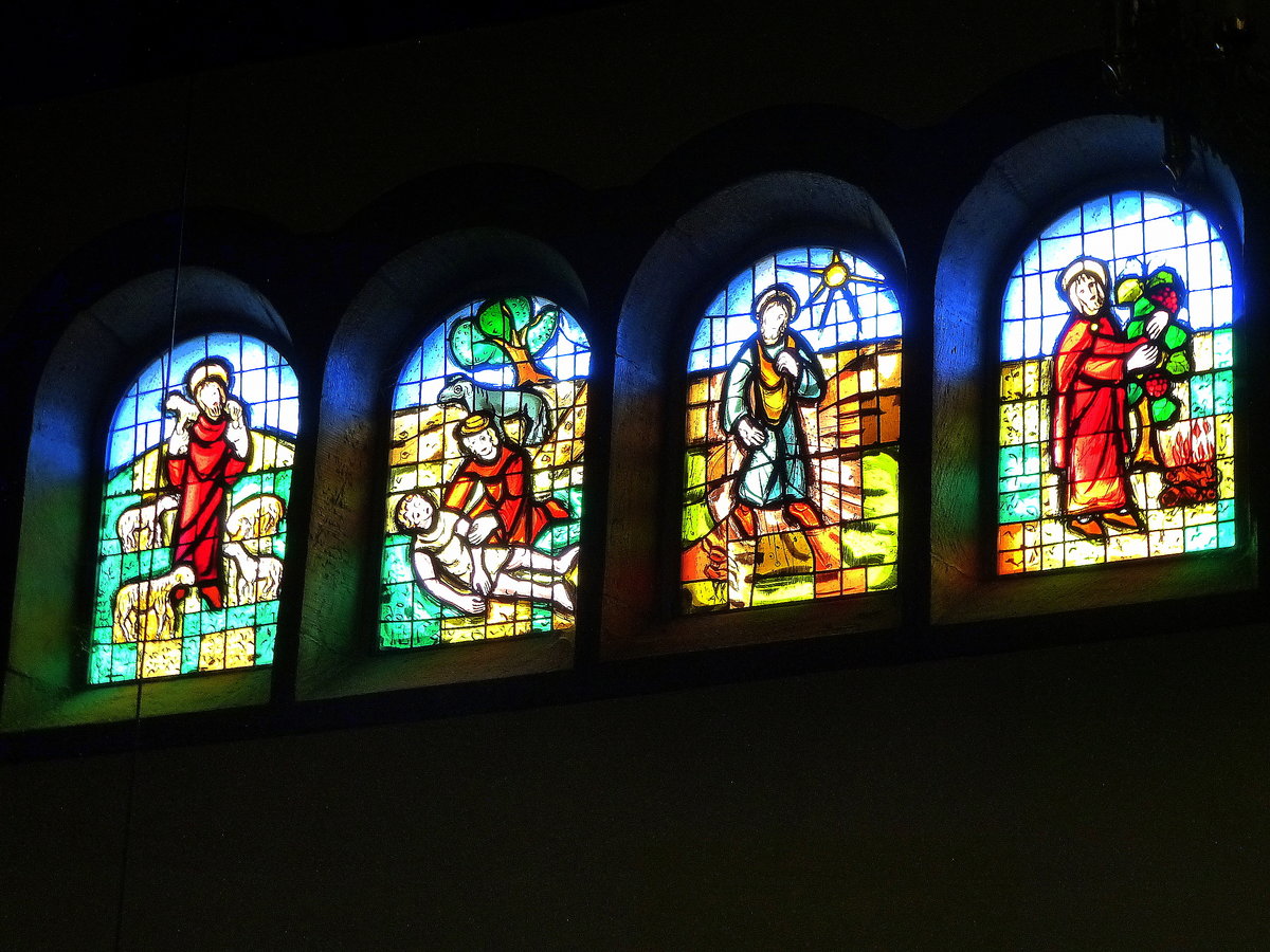 Die Wehrkirche St. Quentin in Scy-Chazelles. In dieser Kirche befindet sich das Grab von Robert Schuman, einer der Väter des modernen Europa. Sein Wohnhaus befindet sich an der linken Seite des Bildes.