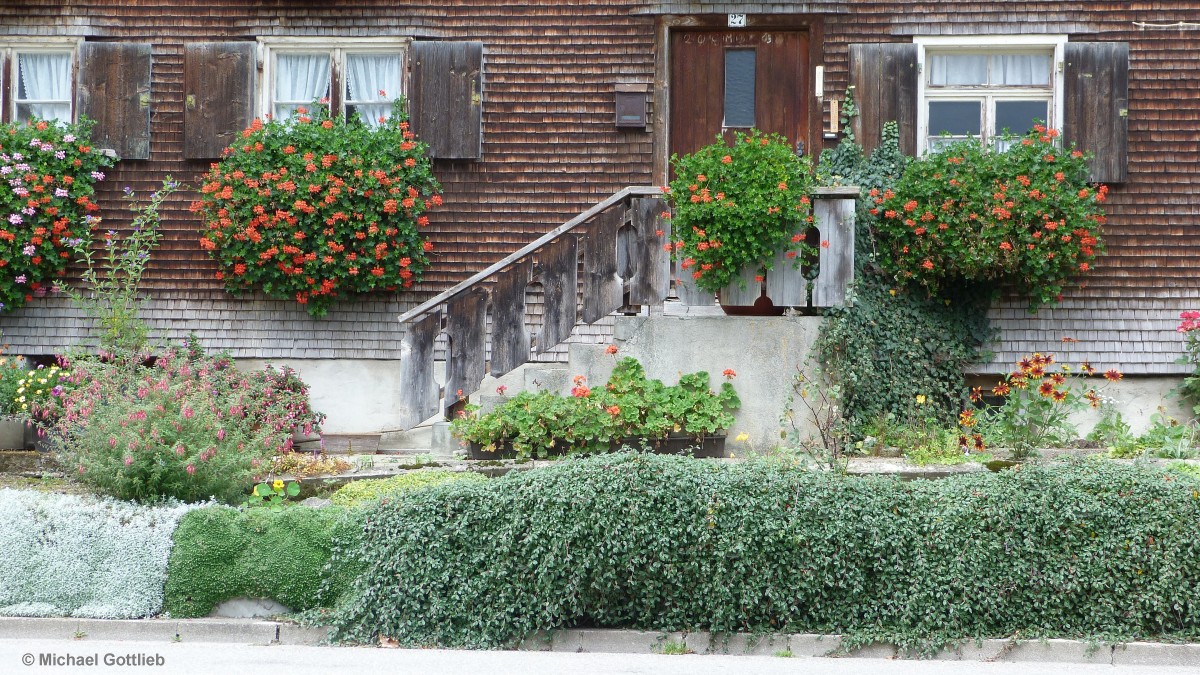 Gerstruben Haus Nr. 4 von 1619 beherbigt ein kleines Muserum - dahinter das Gasthaus, wesentlich jünger (Landkreis Oberallgäu, Bayern, Oktober 2013) Michael Gottlieb
