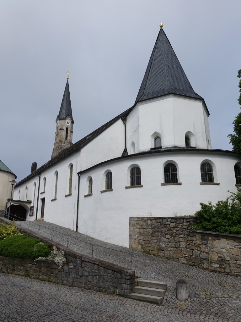 Fürstenstein, Pfarrkirche Maria Himmelfahrt, erbaut 1629 nach dem Vorbild der Hl. Kapelle in Altötting, Langhaus modern ausgebaut von 1956 bis 1957 (25.05.2015)
