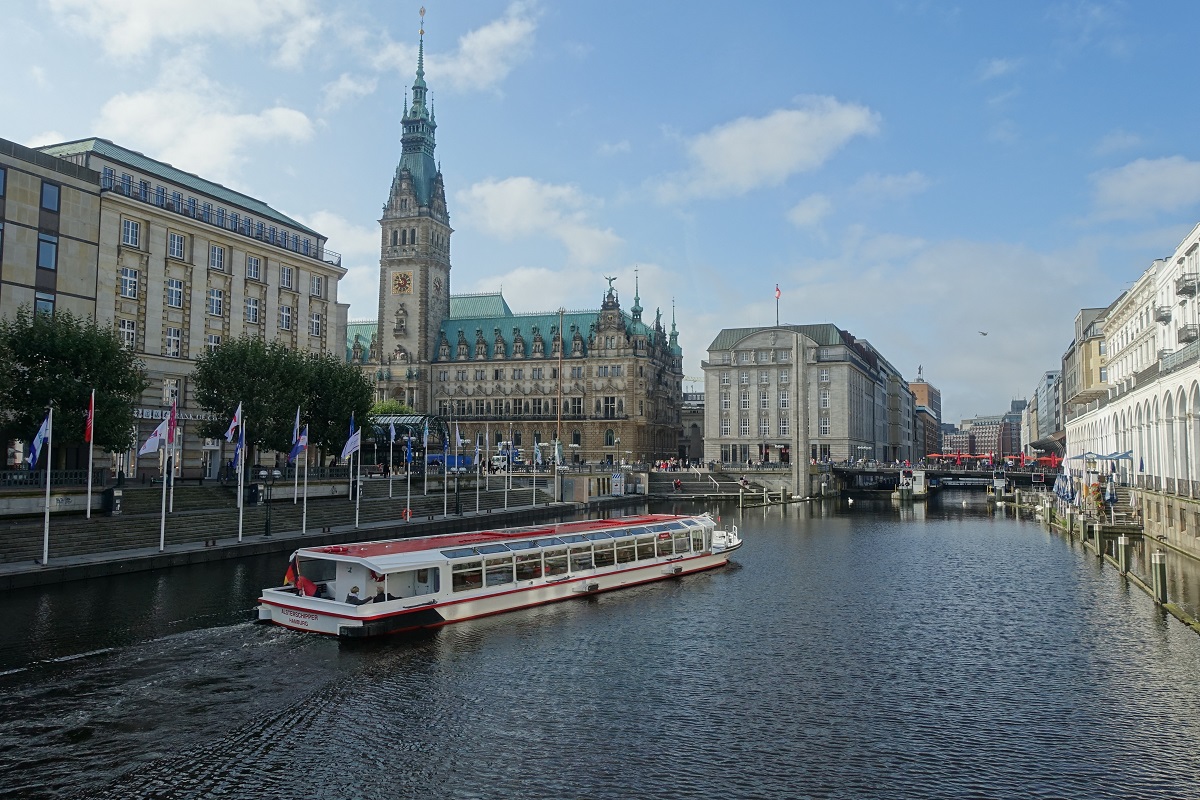 Hamburg am 21.3.2021: Blick von der „Wartenaubrücke“ auf den „Eilbekkanal“ mit den seit 2009 an der linken Seite liegenden Hausbooten, der Eilbekkanal ist die kanalisierte Verlängerung des Flusses „Wandse“ und mündet in die Alster /
