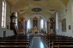 Jahrhundert erbaute katholische Kirche St.Verena und Gallus, die weithin sichtbare grüne Turmspitze wurde um 1600 aufgesetzt, Sept. 2011