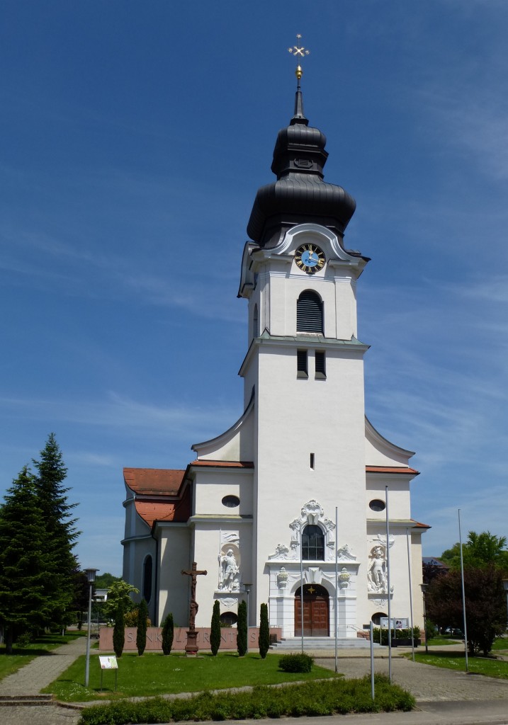 Friesenheim, die katholische Kirche St.Laurentius, im neubarocken Stil erbaut von 1910-1913, Juli 2013