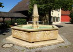 Grißheim, die Kirche St.Michael, erbaut 1756, davor das Kriegerdenkmal, Sept