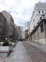 Der Turm der St.-Marien-Kirche in der Hansestadt Stralsund. (August 2021)