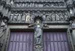 Amiens, Kathedrale Notre Dame, Ausschnitt Nordwand des Hochchores. Da in jüngerer Bauweise Walmdächer (aussen) über Seitenschiff konstruiert, kann das Triforium völlig hinterfenstert werden. Diese Bauweise wird in Beauvais und Köln übernommen, bzw. weiterentwickelt. Über Triforium der Obergaden = 3. Stockwerk der Hochgotik. Aufnahme vom 24. Dez. 2003, 12:04