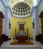 Heiteren, der Chorraum mit Altar in der Kirche St.Jakobus, Aug.2016