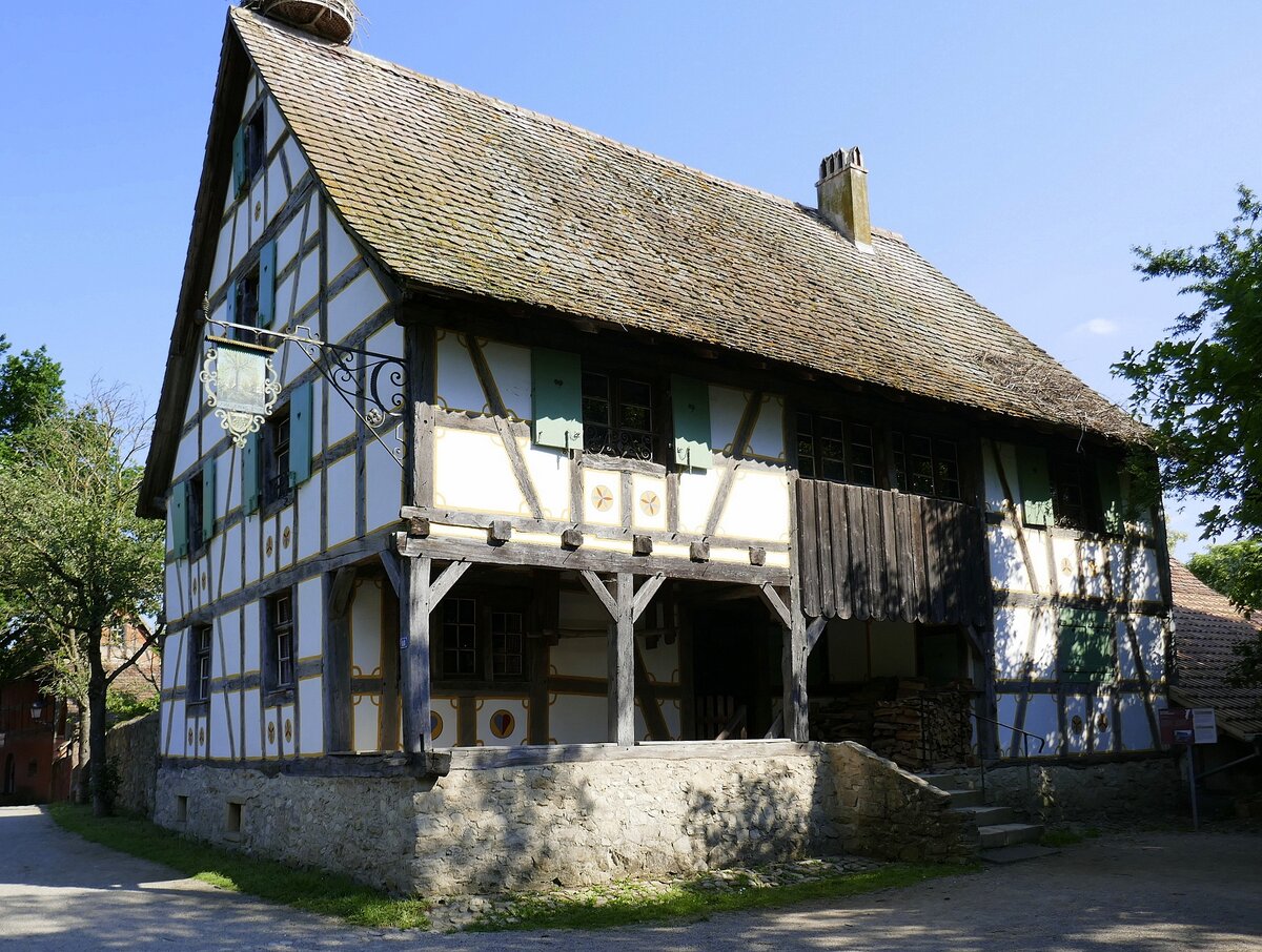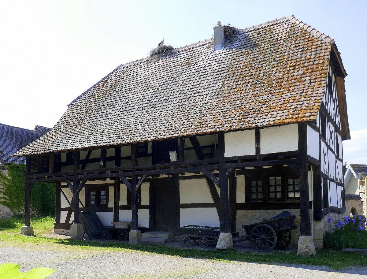 Ungersheim, ECO-Museum, Wohnhaus von 1574 aus dem Sundgau, 1982 abgebaut und anschließend im Museum errichtet, Mai 2025