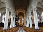 Sint-Niklaas, Mittelschiff der St. Nikolaus Kirche, Kanzel von 1706, Chorgestühl von 1900 (29.04.2015)