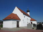 Haunswies, kath. Pfarrkirche St. Jakobus, Saalbau mit flacher Stichkappentonne und eingezogenem Chor, Chor erbaut 1507, Langhaus von 1777, erweitert ...