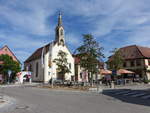 Volkach, evangelische Michaelskapelle am oberen Markt, Saalbau mit eingezogenem Polygonchor und Dachreiter, erbaut Anfang der 15. Jahrhundert (28.05.2017) Peter Reiser
