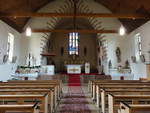 Hohenberg, Katholische Kuratiekirche St. Josef, Expressionistischer Bau aus Brockenmauerwerk und steilem Walmdach, Chor zwischen zwei Türmen, erbaut von 1928 bis 1929 von Fritz Fuchsenberger (15.04.2017) Peter Reiser