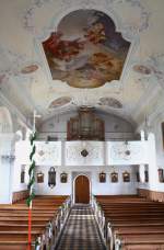 Maria Rain, Blick zur Orgelempore in der Wallfahrtskirche, April 2014