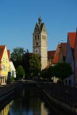 München, die 98m hohen Doppeltürme der Frauenkirche im Hintergrund, rechts davor der 85m hohe Turm des neuen Rathauses, März 2005