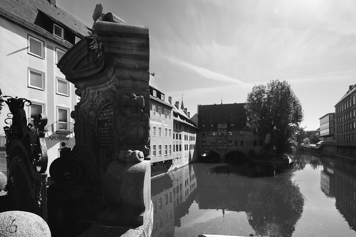 Blick über den Fluss Pegnitz in Nürnberg. (Mai 2017)