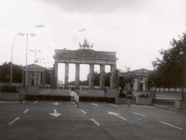 Brandenburger Tor Mitte der 80er Jahre, aus Ost-Berliner Perspektive (Foto von meinem Vater). Man hatte freien Blick auf das Tor, die Betonmauer verlief dahinter. Man konnte die Grenzsoldaten beobachten.