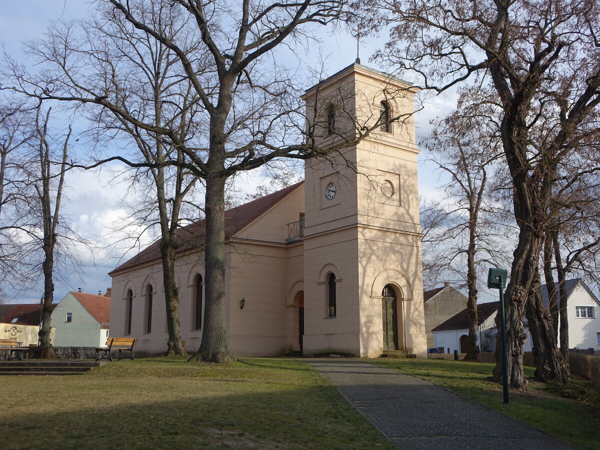 Jänickendorf, evangelische Kirche, erbaut von 1833 bis 1835 im Rundbogenstil (10.03.2026)