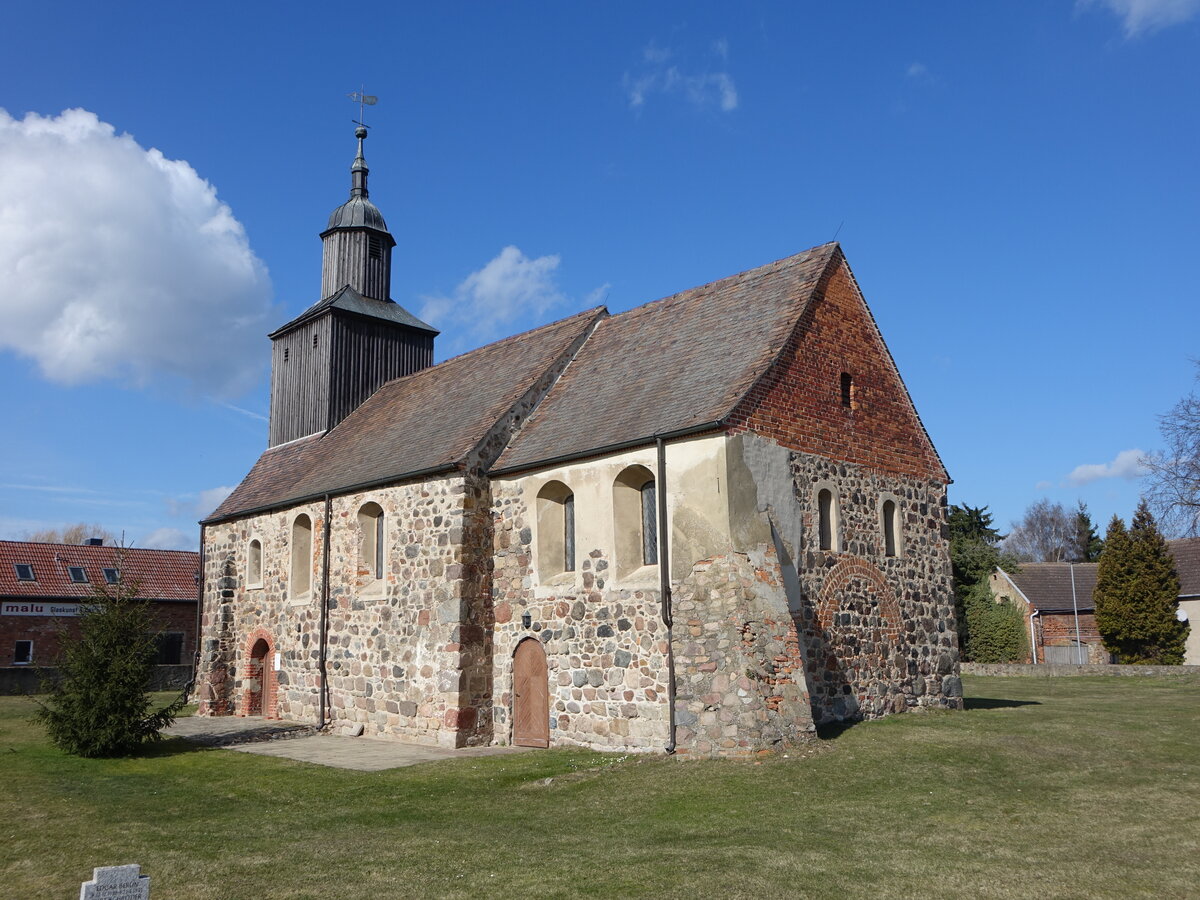 Lindow, evangelische Dorfkirche, Saalbau mit Westturm, erbaut im 12. Jahrhundert (10.03.2026)