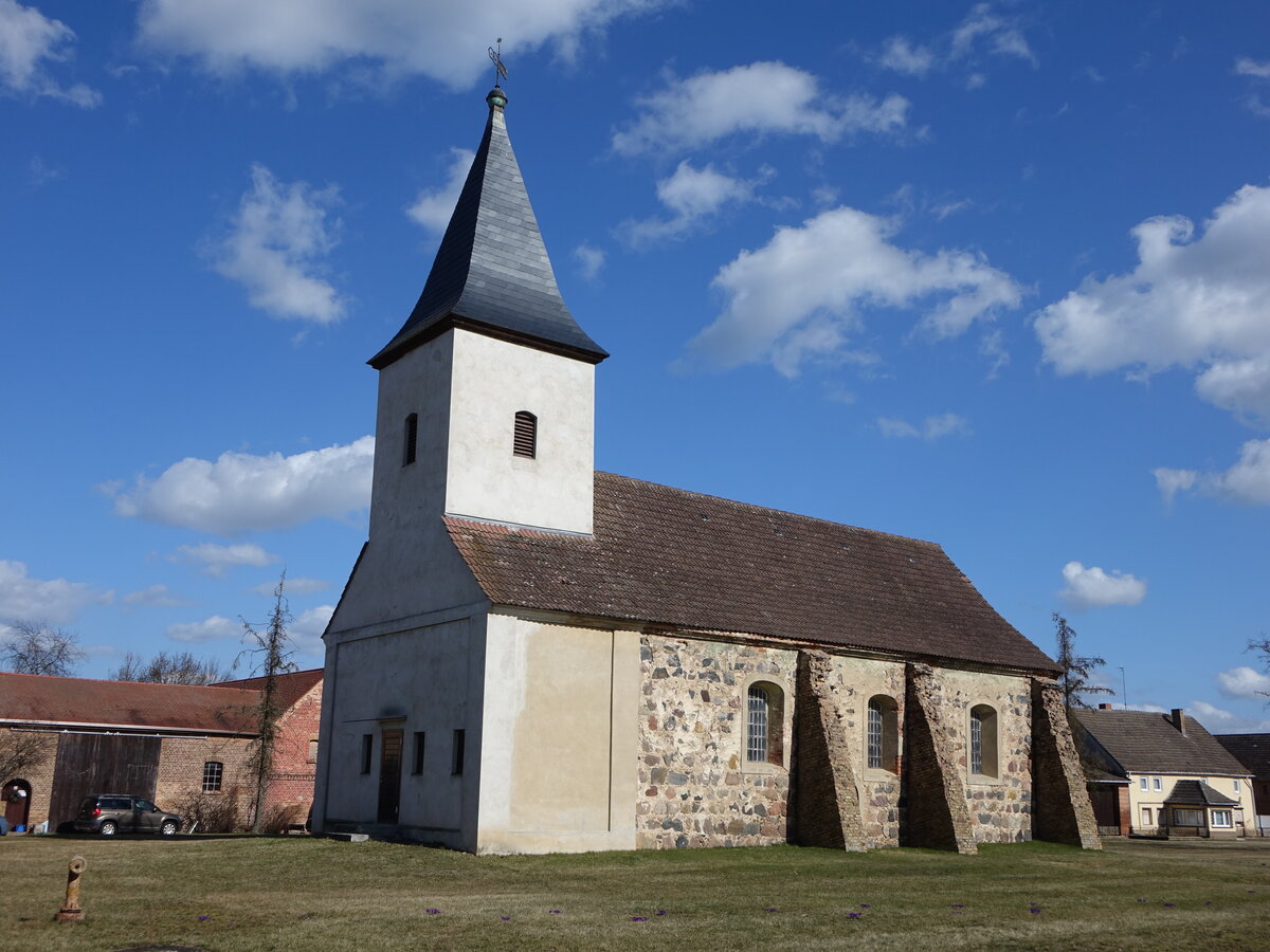 Kemnitz, evangelische Dorfkirche, Feldsteinkirche aus dem 14. Jahrhundert (12.03.2026)