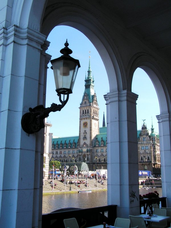 HAMBURG, 18.06.2005, Blick von den Alsterarkaden auf das Rathaus
