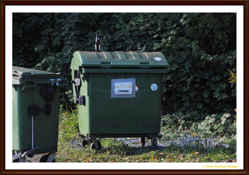Hier scheint jemand die Altpapiertonne, mit der Glastonne verwelschelt zu haben. Gesehen in Lehrte, am 18.10.2010