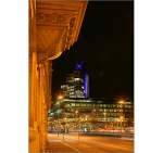 Blick vom Rathausturm auf das Hochhaus der Nord LB. Obwohl völlig andere Architektursprache, sind sich dieser Neubau und das Rathaus doch auch ähnlich. Die Türme stehen jeweils inmitten dazugehöriger niedriger Bauteile. Beide sind Landmarken im Stadtbild. Links in Bildmitte befindet sich der Aegidientorplatz. 3.11.2006 (Matthias) Gisela, Matthias und Jonas Frey