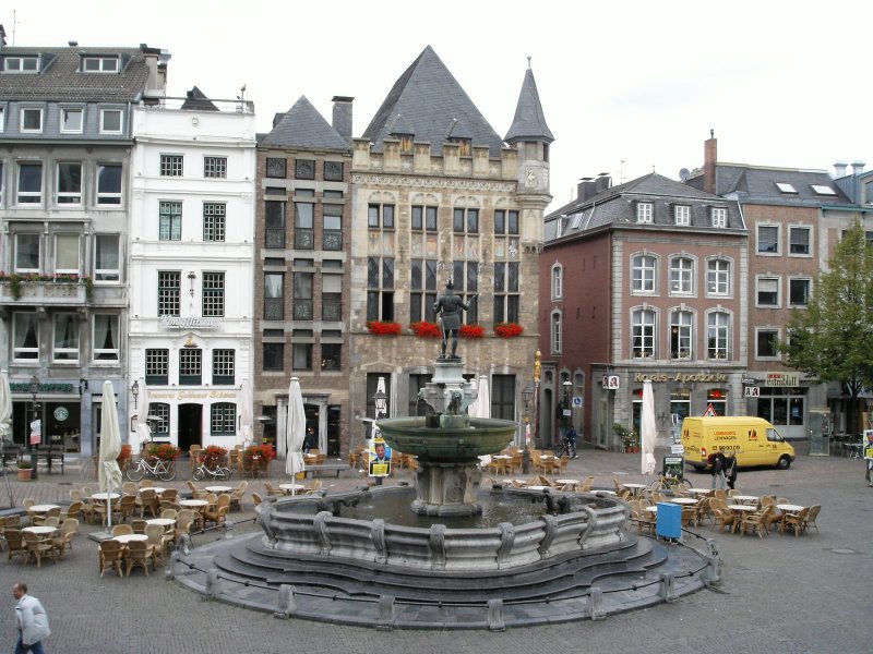 Ein Platz mit Brunnen in Aachen, 20.09.2004.