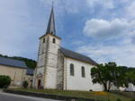 Stockem, kath. Pfarrkirche St. Hubertus, Chorturm erbaut 1220, Langhaus 13. Jahrhundert (22.06.2022)