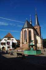Deidesheim, spätgotische St. Ulrich Kirche und altes Rathaus am Marktplatz (26.07.2009)