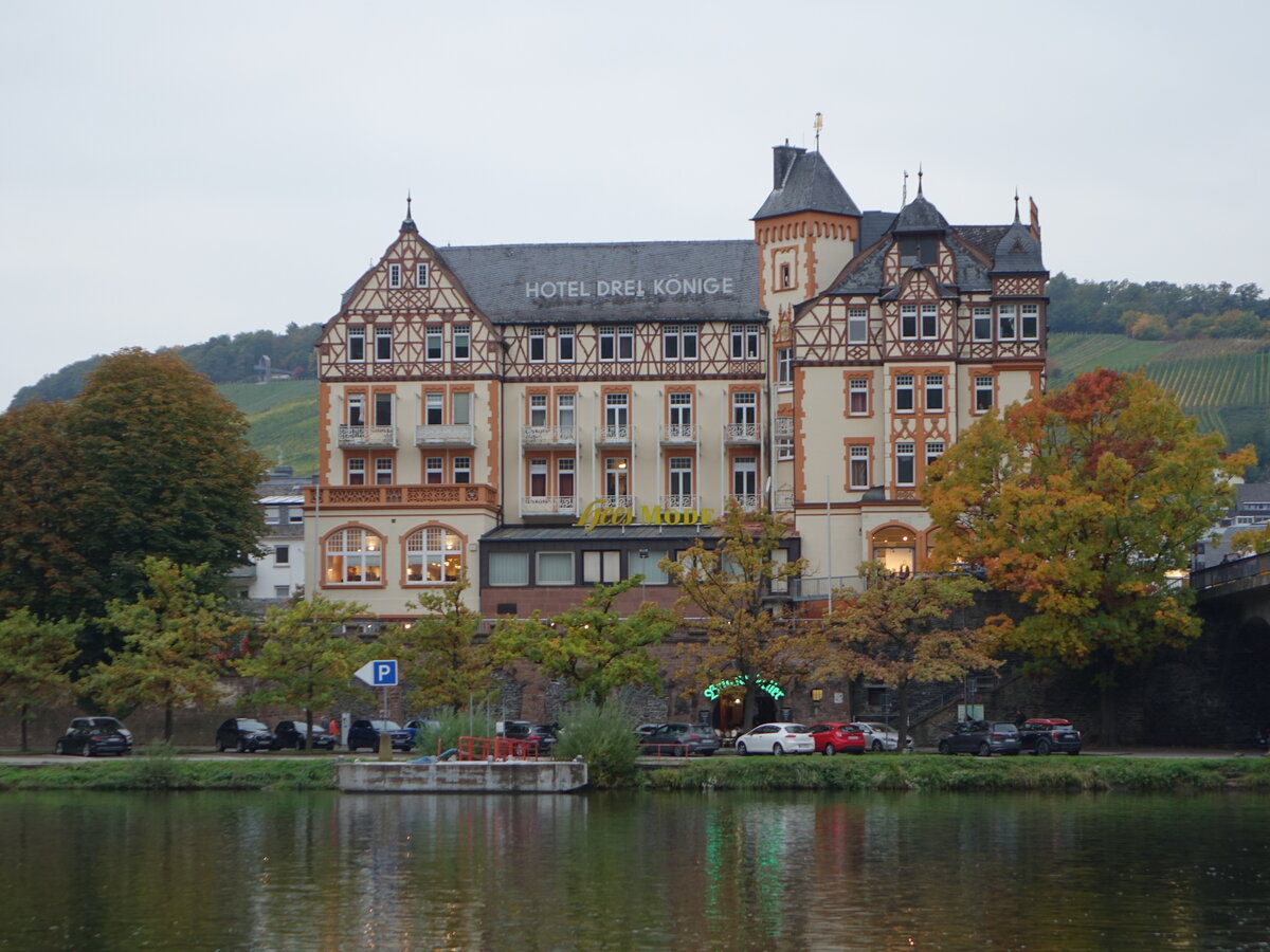Bernkastel-Kues, Hotel Drei Könige, viergeschossiger neugotischer Fachwerkbau, erbaut von 1901 bis 1902 (10.10.2025)