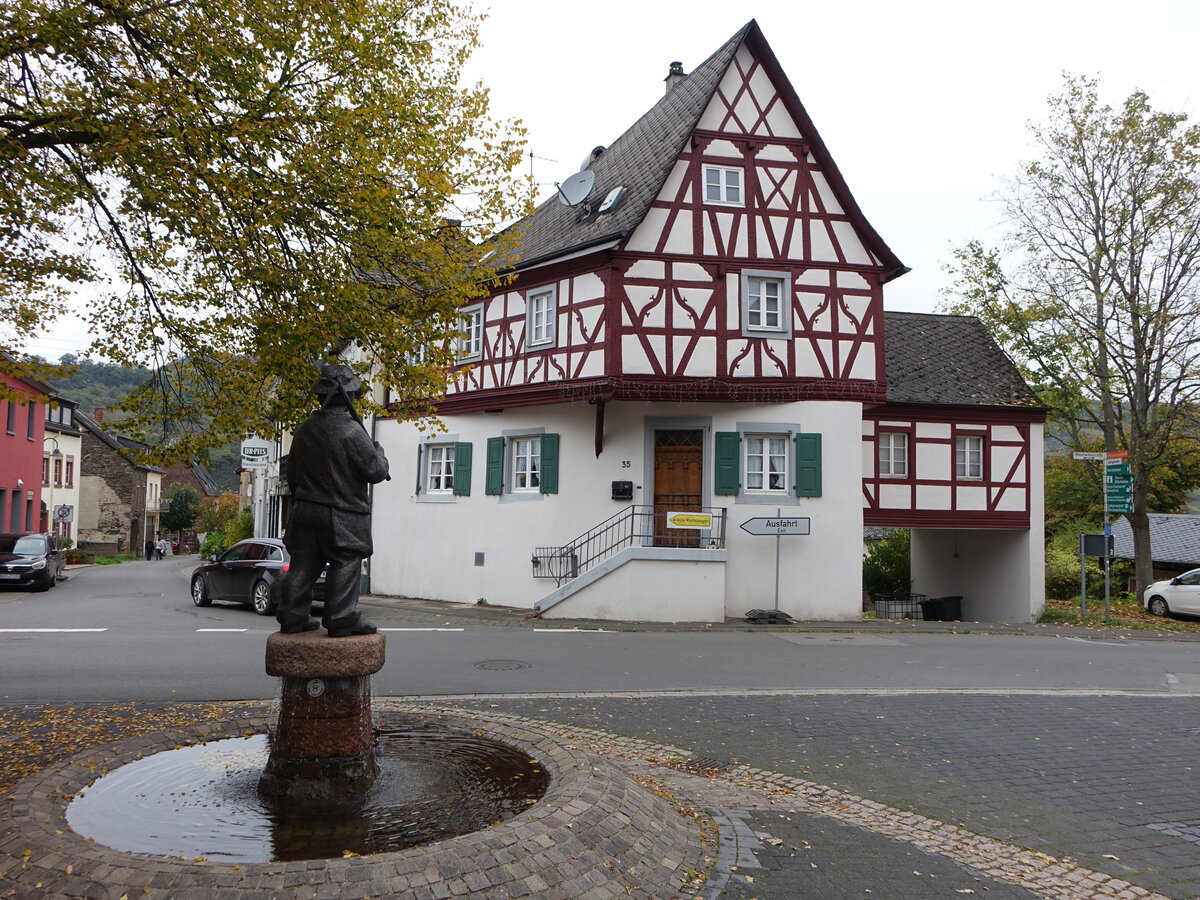 Wintrich, Brunnen und Fachwerkhaus von 1719 an der Moselweinstraße (10.10.2025)