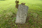 Grabstein auf dem alten jüdischen Friedhof im nordfriesischen Friedrichstadt. Im Jahre 1939 musste die jüdische Gemeinde dem »Wunsch« der Stadtverwaltung zustimmen, die vorhandenen Grabsteine umzulegen und mit einer Erdschicht zu bedecken. Nach 1939 wurde das Friedhofsgelände zuerst als Kleingartenanlage und später als Lagerplatz für Baumaterial benutzt. 1953 wurde der Friedhof eingezäunt, die noch vorhandenen Grabsteine wurden ausgegraben und zusammen mit an anderer Stelle gefundenen Grabsteinen wieder aufgestellt. Aufnahme: 9. Juli 2019. Hans Christian Davidsen