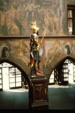 Basel, Rathaushof, Figur des Munatius Plancus mit Wandbildern (1999)