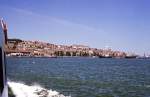 Bairro Alton in Lissabon von der Cacilhas-Fähre aus gesehen.