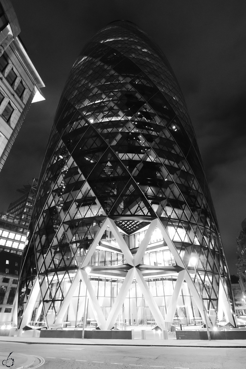 Das Hochhaus 30 St Mary Axe, häufig auch Gewürzgurke genannt ist ein 180 m hoher Wolkenkratzer in London. (September 2013)