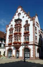 Mengen in Oberschwaben, das Rathaus der 10.000 Einwohner-Stadt, erbaut 1821, 1907 erneuert, Aug.2012