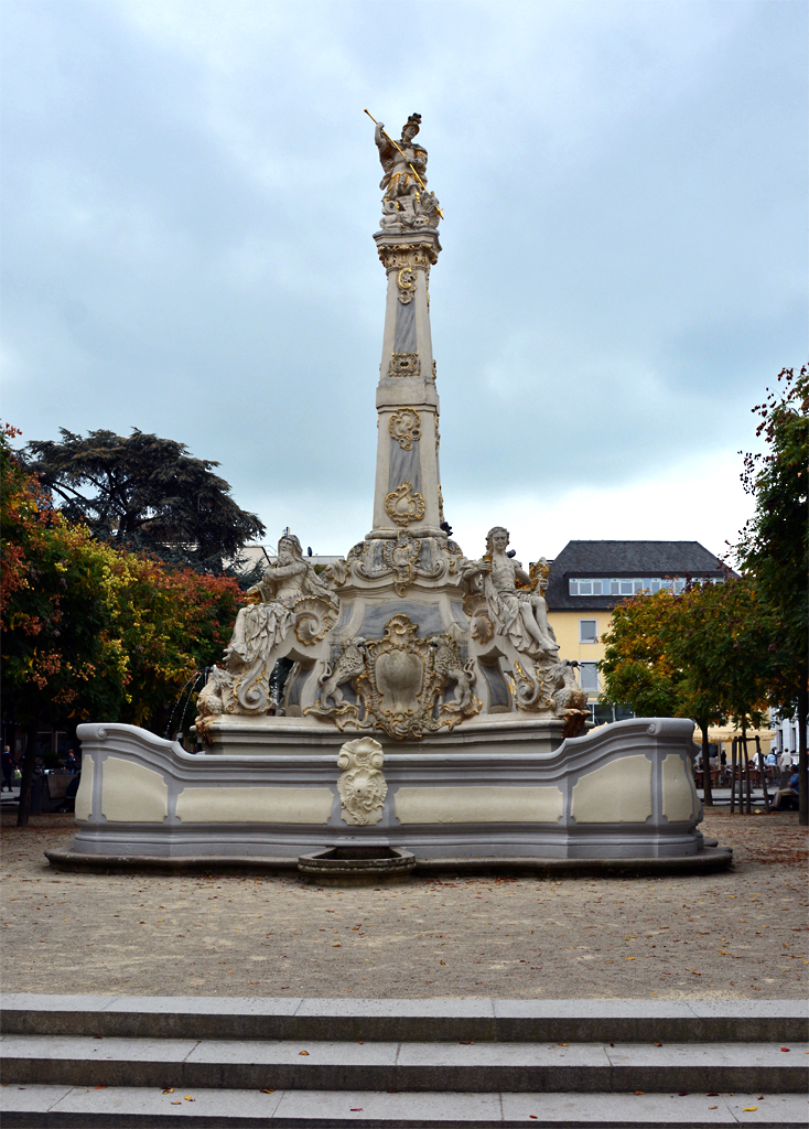 Freiburg, Brunnen mit Gedenkstein zum 1200-jährigen Bestehen von St.Georgen, einem Stadtteil im Süden von Freiburg, aufgestellt im Jubiläumsjahr 1986, Juni 2014 rainer ullrich