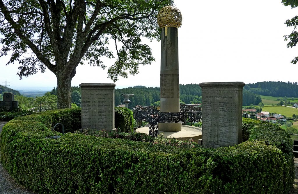 Bodnegg, das Denkmal für die Gefallenen der Weltkriege auf dem Kirchberg, Aug.2012