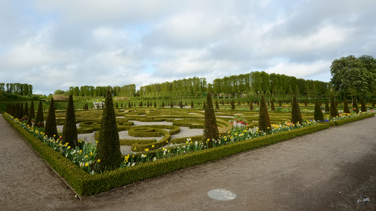 Die Südseite von Schloss Frederiksborg (dänisch Frederiksborg Slot) - ein Wasserschloss in Hillerød auf der dänischen Insel Seeland. Es gilt als größtes und bedeutendstes Bauwerk der nordischen Renaissance und beherbergt heute das Dänische Nationalhistorische Museum. Aufnahme: 31. August 2021. Hans Christian Davidsen
