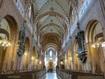 Ringsted, Innenraum der evangelischen St. Bendts Kirche, Fresken aus romanischer und gotischer Zeit, Taufstein von 1150, Chorgestühl von 1420 (22.07.2021)
