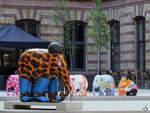 Varde, Denkmal und Rathauscafe am Hauptplatz Torvet (09.06.2018)