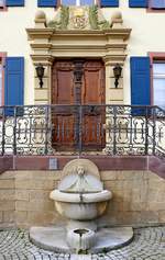 Hügelheim im Markgräflerland, das Pfarrhaus von 1549 mit dem Pfarrbrunnen von 1791, Okt.2019